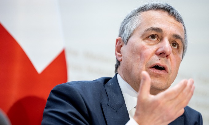 Ngoại trưởng Cassis trong buổi họp báo tại Bern, Thụy Sĩ, ngày 10/6. Ảnh: Reuters