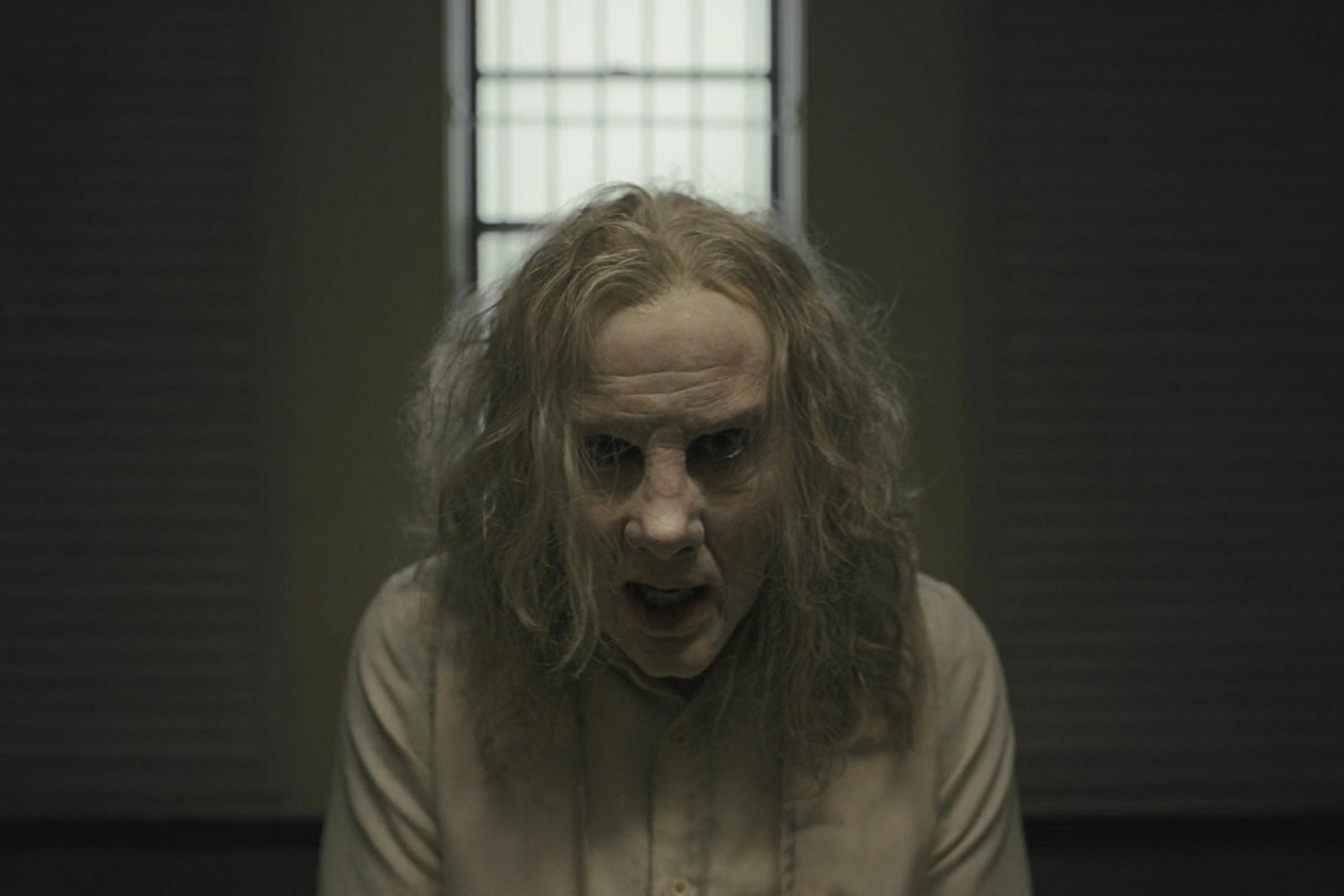 Mỗi lần xuất hiện, gương mặt trắng bệch của Longlegs như chiếm trọn khung hình, giúp câu chuyện thêm phần rùng rợn.