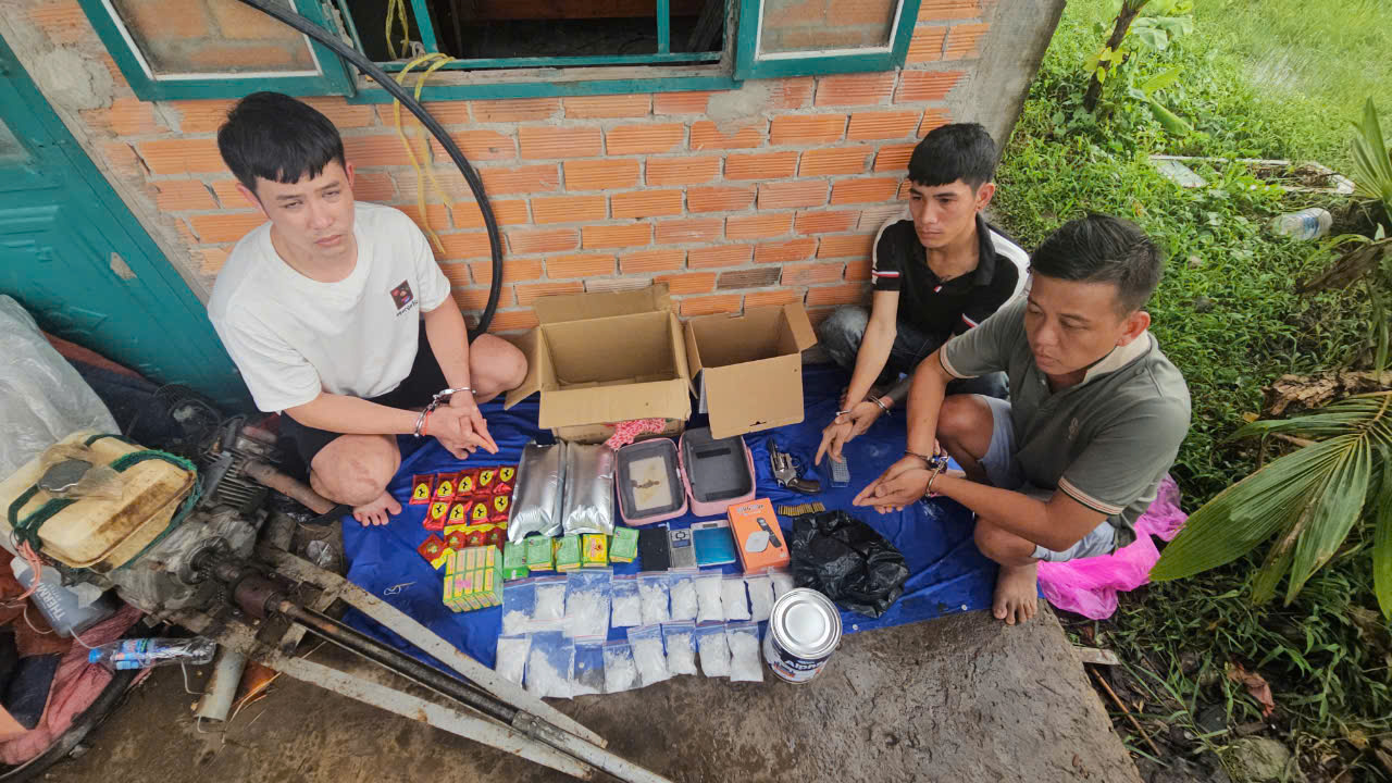 Từ lời khai này, cảnh sát đã ập vào căn nhà ở xã Bình Đức, bắt giữ Em. Qua khám xét, cảnh sát phát hiện số lượng lớn ma túy cùng 1 khẩu súng, 20 viên đạn.