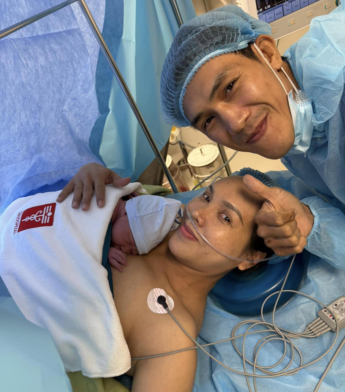 Nguyễn Trần Duy Nhất và bà xã Kim Oanh bên con trai mới chào đời. Ảnh: Facebook Nguyễn Trần Duy Nhất