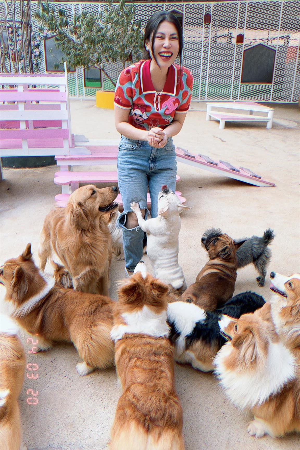 Uyên Trang thích chơi với động vật, nhà có nuôi 1 chú chó (ảnh phải) bầu bạn.