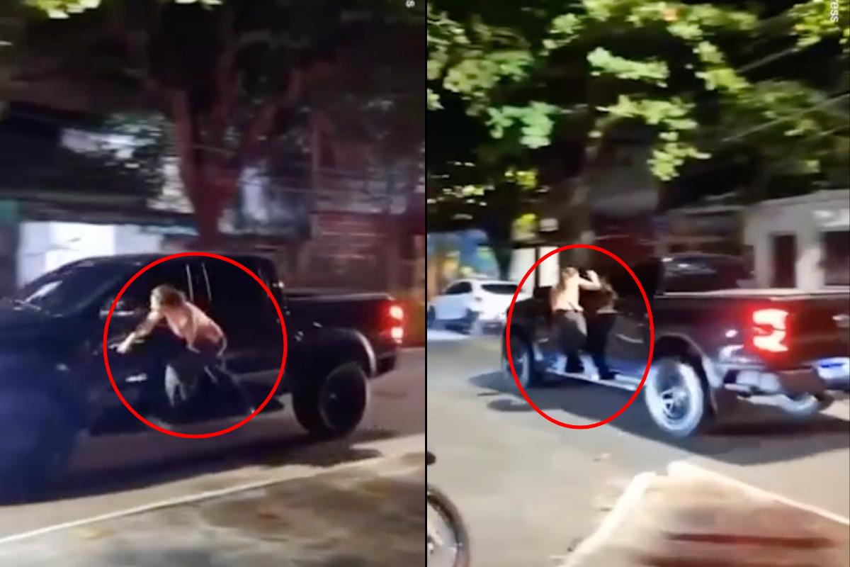 Trong video, Dayana đã trèo lên xe, đập cửa và la hét, bất chấp xe đang lao đi trên đường. Sau đó, chồng cô dừng xe và cố đẩy cô xuống đường, nhưng không rõ cô có bị thương hay không.
