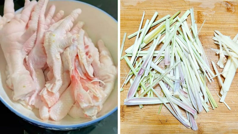 Chân gà rút bạn rửa sạch với nước muối loãng, sau đó rửa lại với nước sạch và để ráo.