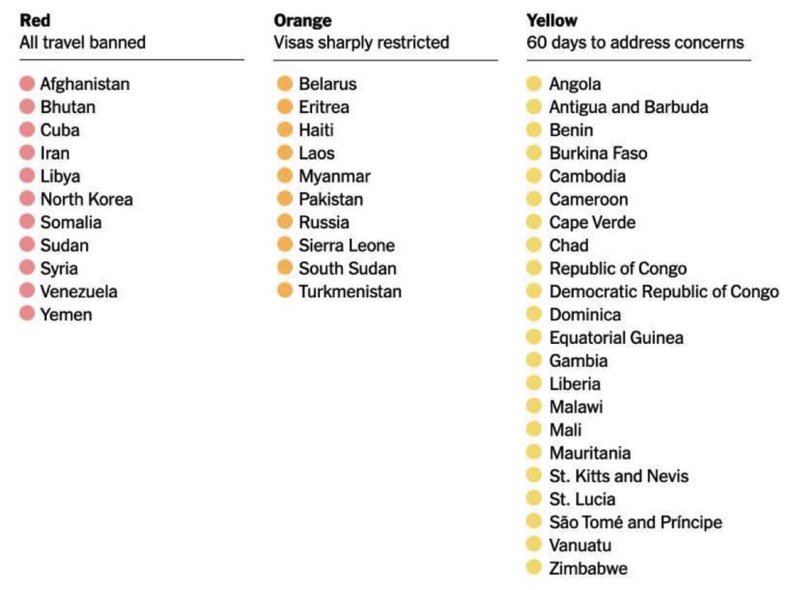 Chính quyền của tổng thống đã lập danh sách 43 quốc gia mà công dân của họ giờ đây sẽ phải đối mặt với các yêu cầu nhập cảnh vào Mỹ nghiêm ngặt hơn.
