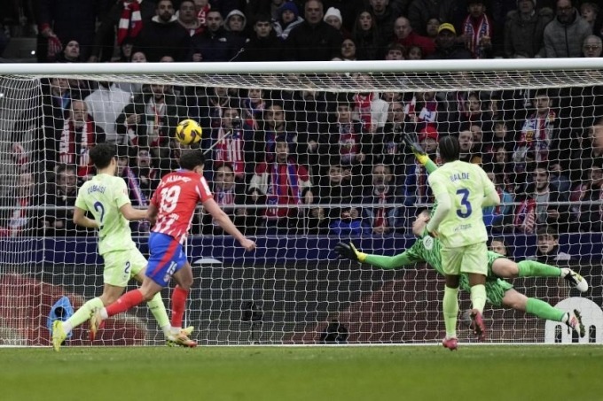 Nhưng giống nhiều cuộc đối đầu trước, Atletico luôn biết cách phát huy chiến thuật phòng ngự phản công khi cần. Barca rơi vào bẫy khi dâng lên quá cao ở phút 45. Antoine Griezmann và Giuliano Simeone liên tục đảo cánh, trước khi Julian Alvarez đệm bóng mở tỷ số.