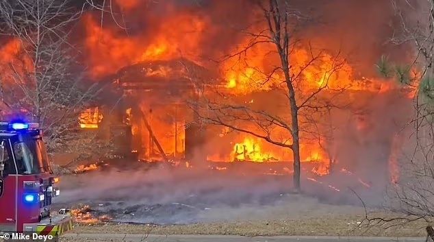 Các video trên mạng xă hội cho thấy ngọn lửa bao trùm ngôi nhà khi các thành viên của đội cứu hỏa địa phương cố gắng dập tắt đám cháy.