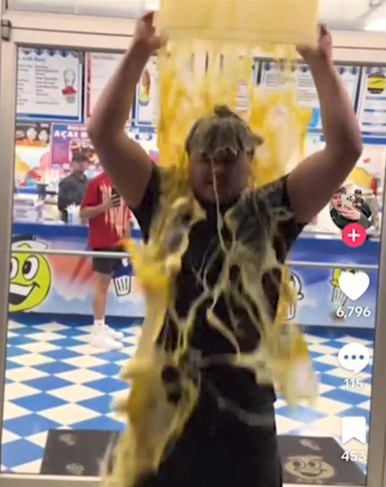 Ngày 29/4, Vazquez quay video đổ trứng sống lên đầu ngay bên ngoài quán kem Ralph’s Italian Ices ở thị trấn Centereach, rồi nhanh chóng rời đi trong chiếc ô tô. Video này đã nhanh chóng lan truyền, nhưng để lại phía sau là một bãi hỗn độn khiến quán phải thuê dịch vụ dọn vệ sinh chuyên nghiệp.