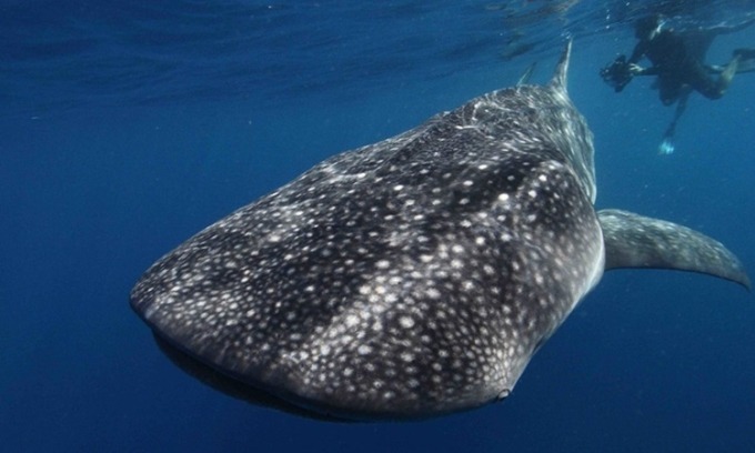 Cá mập voi rất hiền lành dù có kích thước đồ sộ. Ảnh: NOS