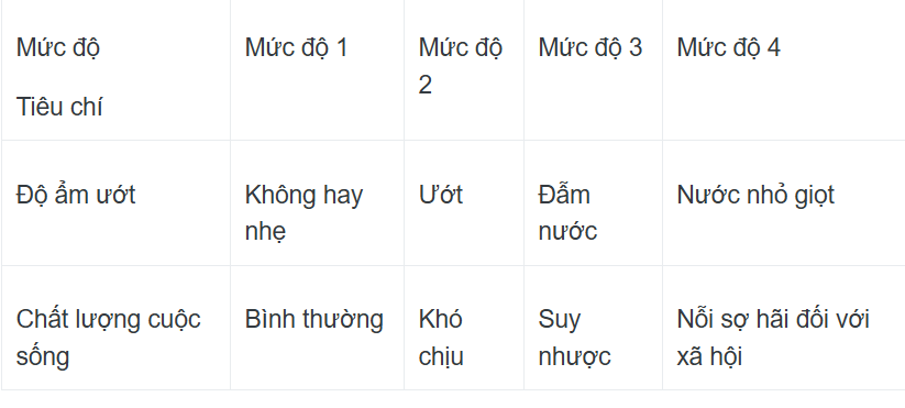 Theo Krasna, đánh giá mức độ tăng tiết mồ hôi được chia như sau: