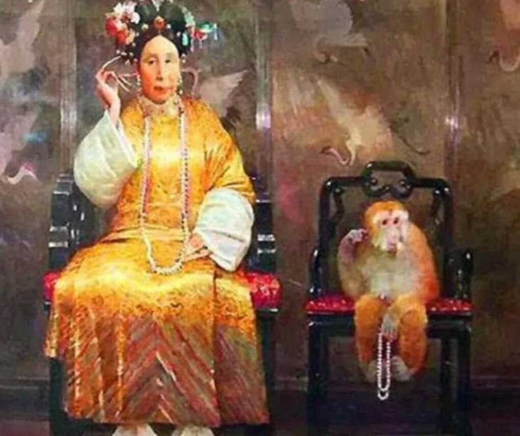 Từ Hi Thái hậu khi còn nhỏ cũng rất xinh đẹp, từng chụp ảnh nhóm với con khỉ do mình nuôi.