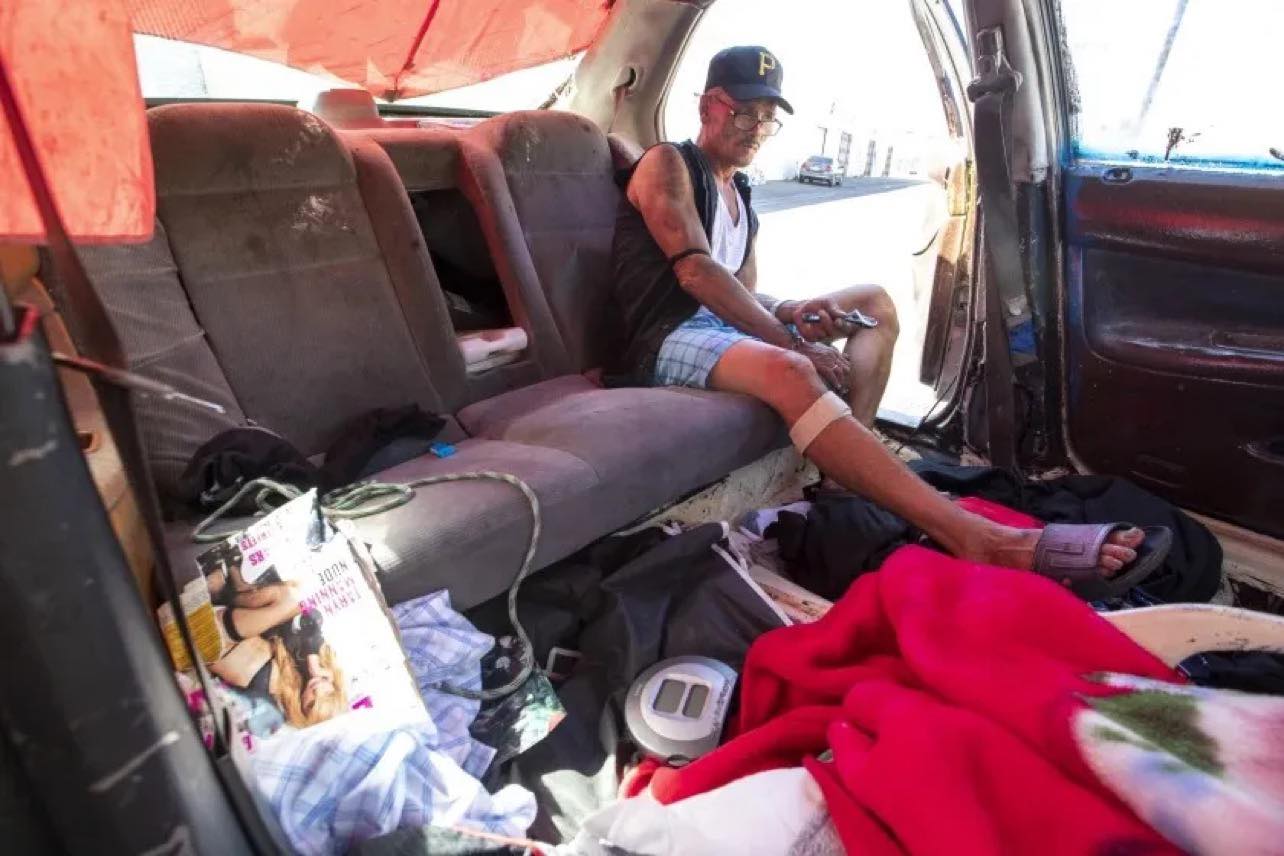Tam Nguyen- Một người gốc Việt vô gia cư trên phố Bolsa. Ảnh LA