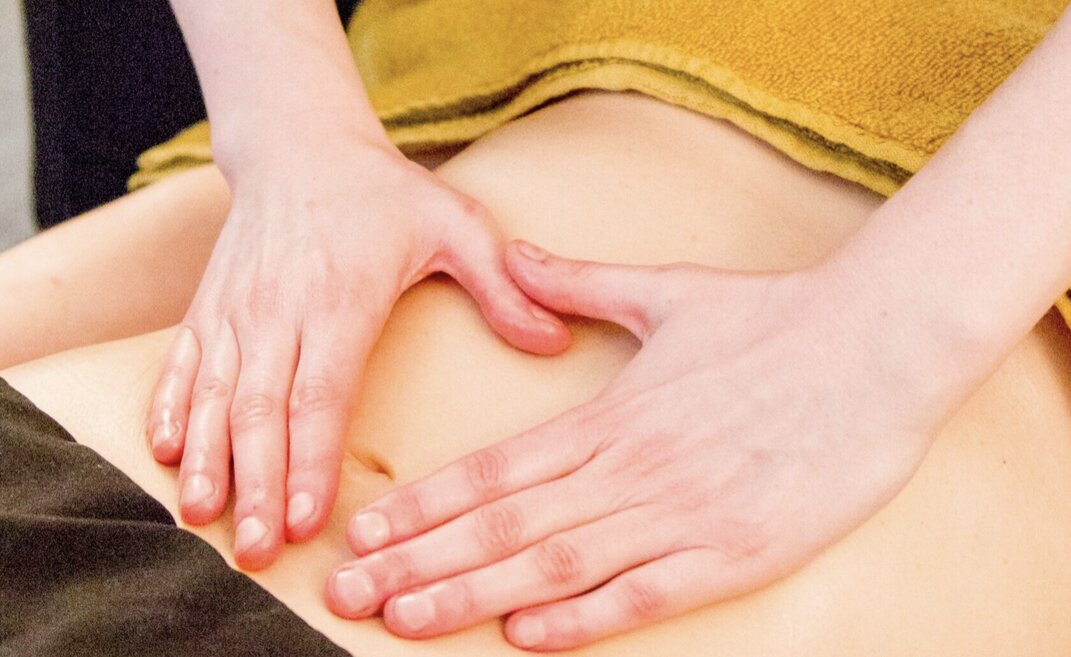 Đặt lòng bàn tay lên phần bụng phải (vị trí gan) và massage theo chuyển động tròn nhẹ nhàng trong khoảng 2 phút.