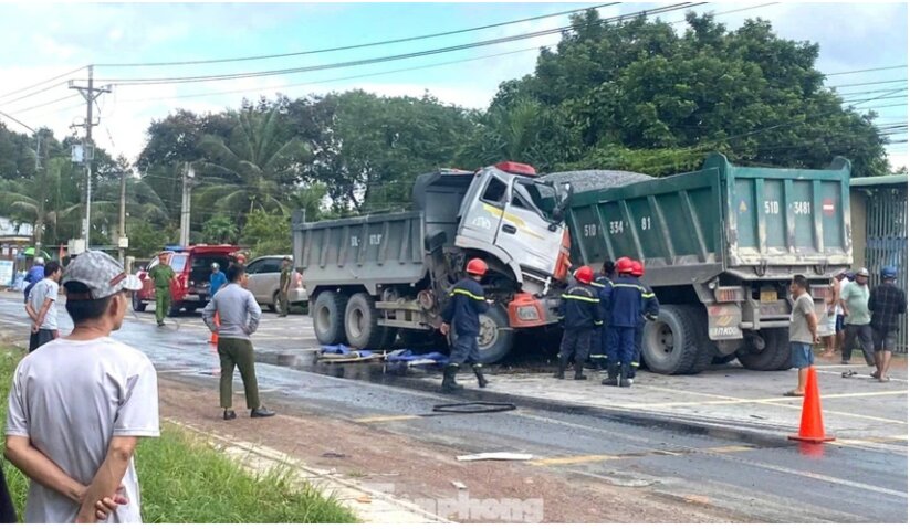 Hai chiếc xe ben đấu đầu nhau, hậu quả khiến hai tài xế thương vong. Vụ tai nạn xảy ra trên đường ĐT.746, TP.HCM.