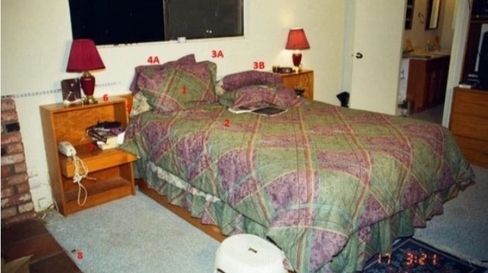 Trong phòng ngủ của hai vợ chồng, cảnh sát tin rằng đã phát hiện nhiều vệt máu bắn trên đồ vật và nhận định đây là hiện trường vụ tấn công.