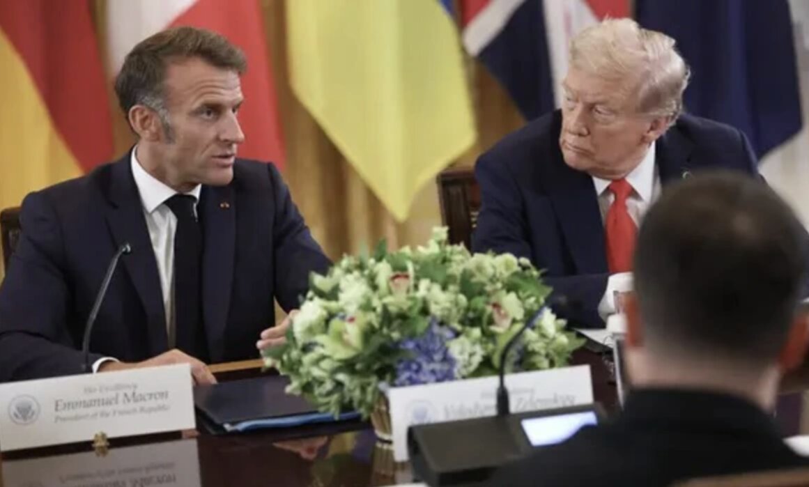 Trong một khoảnh khắc tại Nhà Trắng, Tổng thống Donald Trump thì thầm với Tổng thống Pháp Emmanuel Macron rằng ông tin Vladimir Putin muốn đạt được một thỏa thuận hòa bình là "vì ông" một nhận định mà chính ông Trump thừa nhận là "nghe có vẻ điên rồ".