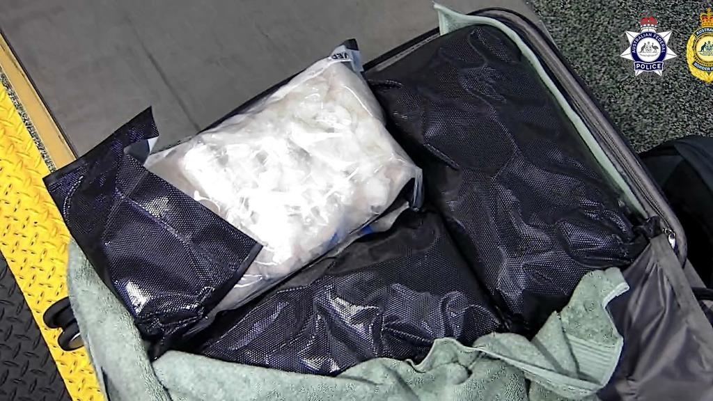 Các nhân viên của ABF được cho là đã tìm thấy 12 túi nhựa kín chứa chất kết tinh màu trắng trong vali của người đàn ông này.