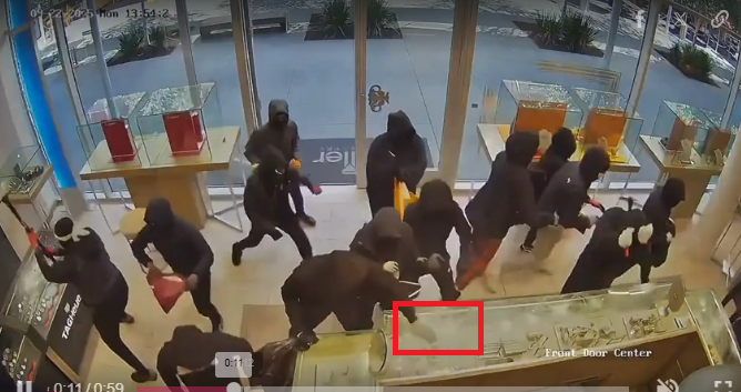 Nhóm cướp bịt mặt cướp phá tiệm trang sức Heller Jewelers ở San Ramon, bang California, chiều 22/9. Video: ABC News/ Theo VnExpress.