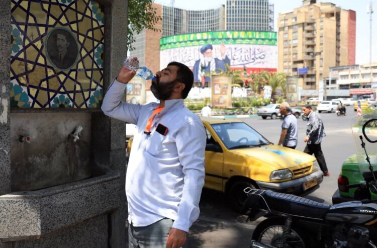 Một người Iran uống nước từ vòi công cộng giữa lúc trời nóng 40°C. Ảnh: EPA