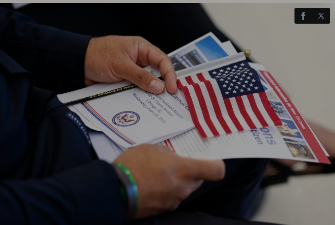 Tài liệu dành cho người nhập cư mới được cấp quốc tịch Mỹ tại Chicago, bang Illinois, ngày 25/6. Ảnh: AP
