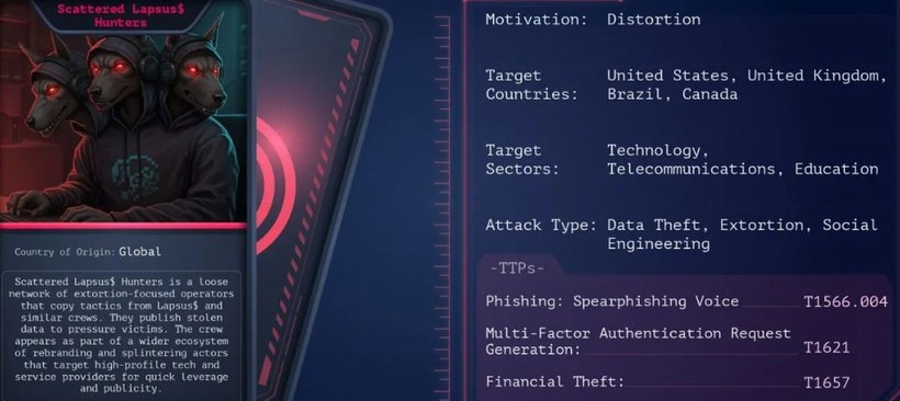 Thẻ tác nhân đe dọa của Scattered LAPSUS$ Hunters. (Nguồn: socradar)