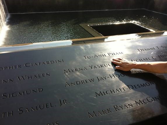 Tên của bà Phạm Tú Anh được khắc trên công trình Đài tưởng niệm các nạn nhân trong vụ khủng bố 11/9/2001. Ảnh: Nyclips