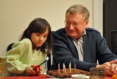 Ông Tom Knobel cùng con gái thắp nến mừng sinh nhật 6 tuổi. Ảnh do gia đình cung cấp.