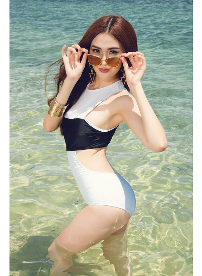 Mẫu nữ 9X Andrea nhờ hình thể lai tây cao ráo cùng vòng eo thon gọn nên bikini không hề làm khó được cô.