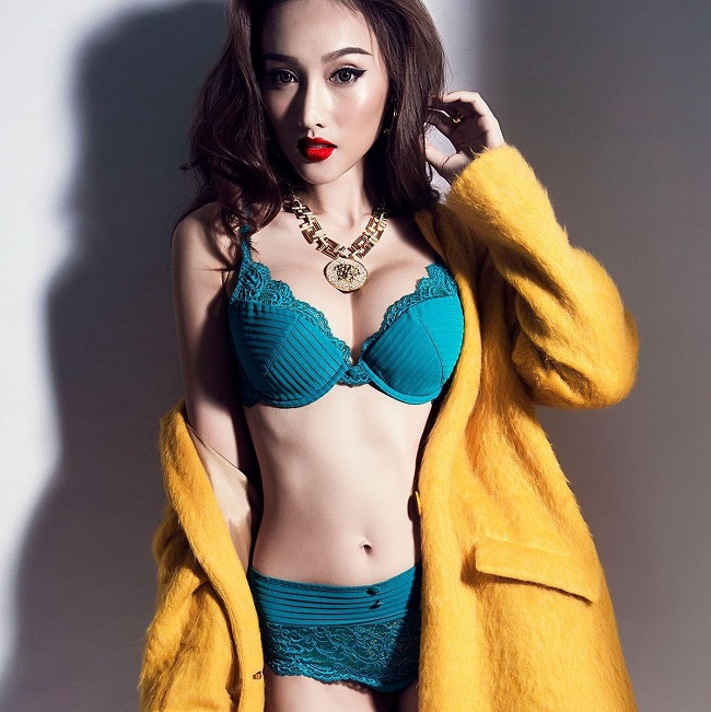 "Cô gái lắm chiêu" Hồng Quế là một trong những người mẫu đắt show chụp quảng cáo nội y nhất showbiz Việt nhờ vòng eo con kiến và vòng mông lớn hơn 90 cm.