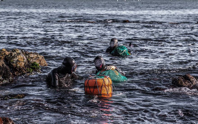 “Trừ băo, bất chấp giá rét chúng tôi cũng không bỏ việc” - bà Song nói. Để mưu sinh, bất đắc dĩ phải thế? “Không hẳn, với chúng tôi công việc này trở thành một nét truyền thống rồi, đó là việc mà đàn ông không được phép bước chân vào nên không bỏ được!” - Kim Chum Ja, 58 tuổi - tiếp lời.