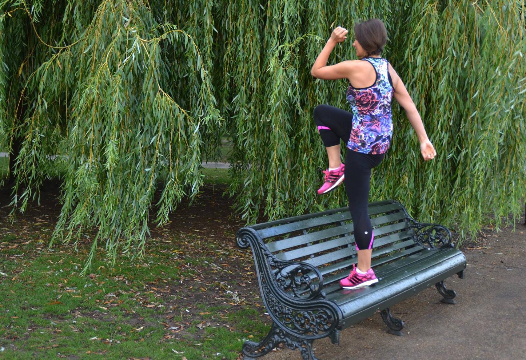 Tấm hinh cô nàng tập: dưới đất xanh tươi. Tấm hình TXT ngồi ghế: dưới đất phủ lá vàng mùa thu.