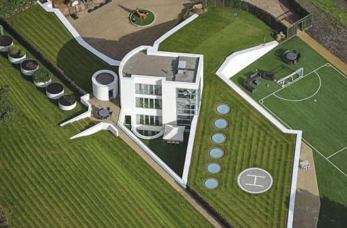 Biệt thự nằm ở phía Bắc London, một vùng ngoại ô tuyệt đẹp. Trong biệt thự có sẵn một bãi đáp trực thăng, một sân bóng đá, hồ bơi trong nhà và phòng tập thể dục.