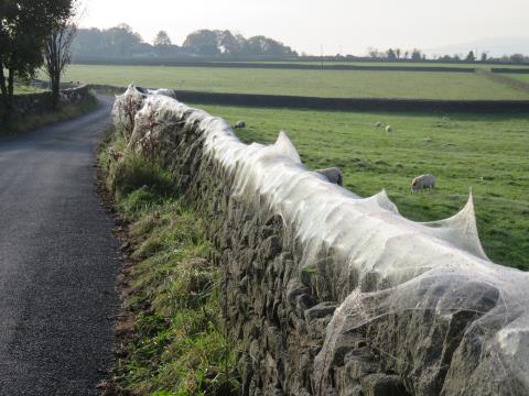 Tuần trước, một dải mạng nhện khổng lồ trải dài 100 mét trên tường của một trong những trang trại cừu gần Trawden, Đông Lancashire (Anh).