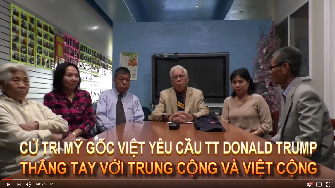 Video được thực hiện tại California, Hoa Kỳ. Đa số người Việt hy vọng khi ông Trump lên làm tổng thống có thể thẳng tay trừng trị bọn Việt Cộng và Trung Cộng chứ không nhu nhược, dung tha kẻ thù.