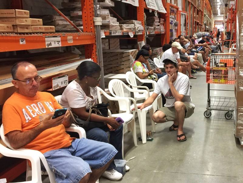 Hơn sáu triệu dân cư bờ đông Hoa Kỳ, tiểu bang Florida sơ tán khỏi vòng tay của quỹ dữ Irma đang cận kề. Các tiệm bán vật liệu xây dựng phải xếp hàng dài từ 2-3 giờ, trước khi rời nhà người dân mua gỗ đóng chặc các cửa sổ và cửa kính. Mua nước uống, pin, ga nấu ăn và thực phẩm chuẩn bị cho tối thiểu một tuần.