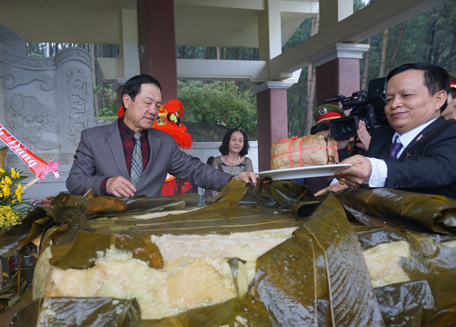 2 chiếc bánh chưng nặng 7 tạ được dâng lên anh linh bà Hoàng Thị Loan, thân mẫu Chủ tịch Hồ Chí Minh dịp đầu năm mới