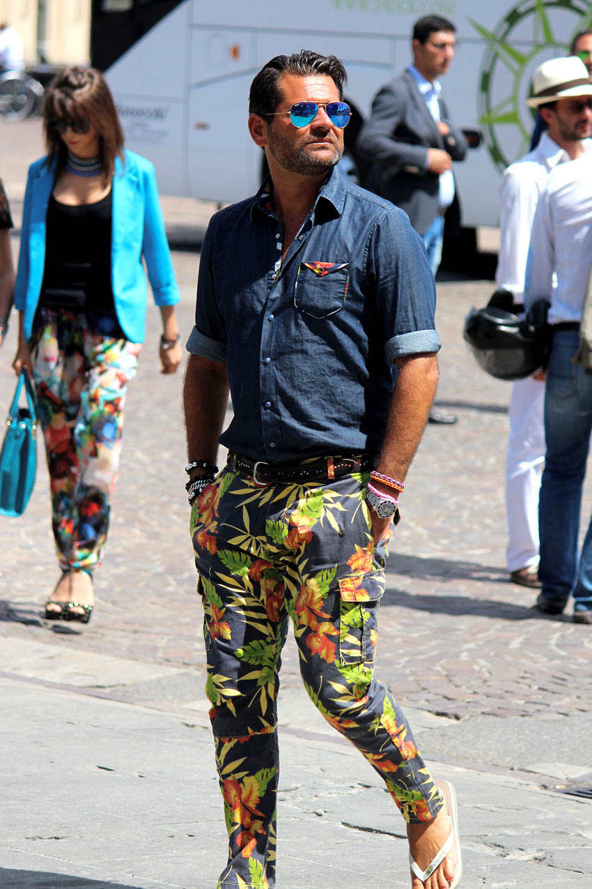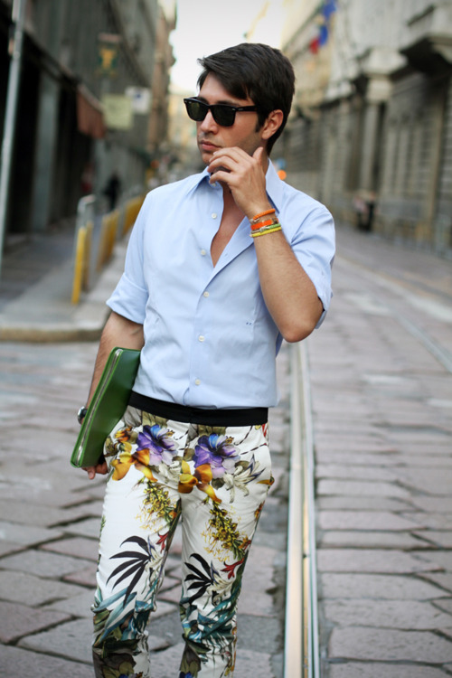 Từ lâu, các hoạ tiết hoa không còn là độc quyền của phái nữ, chúng cũng được ứng dụng lên thời trang nam từ áo đến quần, giày dép...