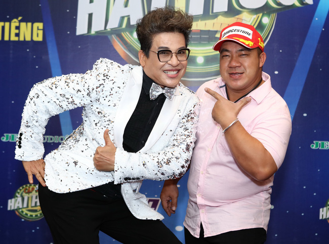 Thanh Bạch diện áo vest theo phong cách "bóng bẩy" quen thuộc, tình tứ sánh đôi bên nghệ sĩ hài Kiều Oanh. Với những câu hỏi liên quan đến đời sống gia đình, Thanh Bạch từ chối đề cập đến.
