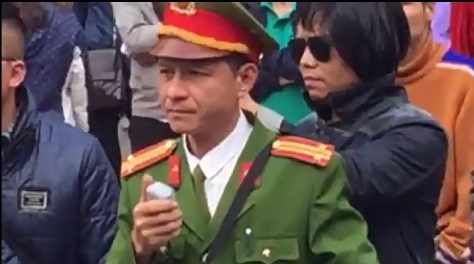 Ảnh sau tên cắt đá này đã mang lon trung tá, nhằm đàn áp biểu tình chống Trung Cộng tại Hà Nội ngày 17 tháng 2 năm 2017.