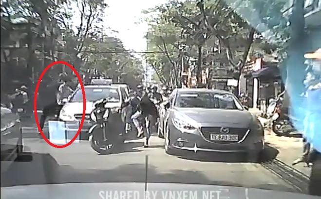 Những tưởng mọi chuyện sẽ dừng lại thì nam thanh niên đi xe máy lại tỏ ra hung hăng, tức giận lao về phía tài xế taxi "nói chuyện" bằng những cú đấm, đá liên tục khiến tất cả đều bất ngờ. Nếu không theo dõi từ đầu thì hẳn người ta sẽ cho rằng taxi mới là bên đi sai, cố tình đâm xe máy.