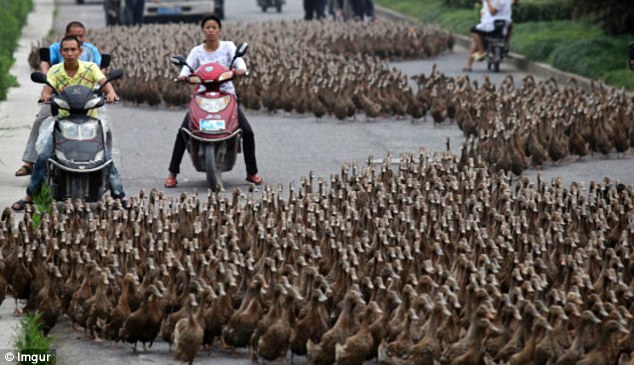 Thử tưởng tượng xem, đang đi trên đường thì 5,000 con vịt từ đâu xuất hiện. Hay kiểu trong lúc vô tư hồn nhiên lái xe thì ở đâu ra một xe chở 6 tạt đầu bạn! 6 người trên một chiếc xe máy chứ không phải ô tô đâu!