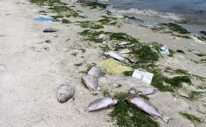 Vậy nhưng, khi đã dùng rất nhiều loại thuốc để chống dịch bệnh nhưng tôm cá vẫn chết. Không chỉ tôm, cá trong các lồng bè, mà ngay cả các loại hải sản trong đầm Thủy Triều chết hàng loạt, sóng vỗ phơi thân trắng cả bờ.