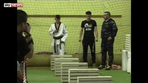 Kerim, Ahmetspahic, 16 tuổi người Bosnia đã lập kỉ lục thế giới mới với 16 chồng bê tông xếp liền nhau. Nhà vô địch taekwondo trẻ tuổi đập nát 111 khối bê tông trong thời gian vỏn vẹn 35 giây. Đáng chú ý, Kerim dùng đầu để công phá vật liệu rất cứng này.
