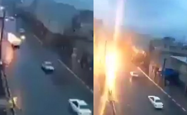 Như những gì người xem có thể thấy trong đoạn video, được quay bởi camera an ninh trên đường, chiếc xe đang chạy thì bất ngờ, một tia sét giáng xuống khiến xe ô tô bốc hỏa. Người chủ phương tiện cũng mất phương hướng, để chiếc xe lao đi với tốc độ gấp đôi bình thường.