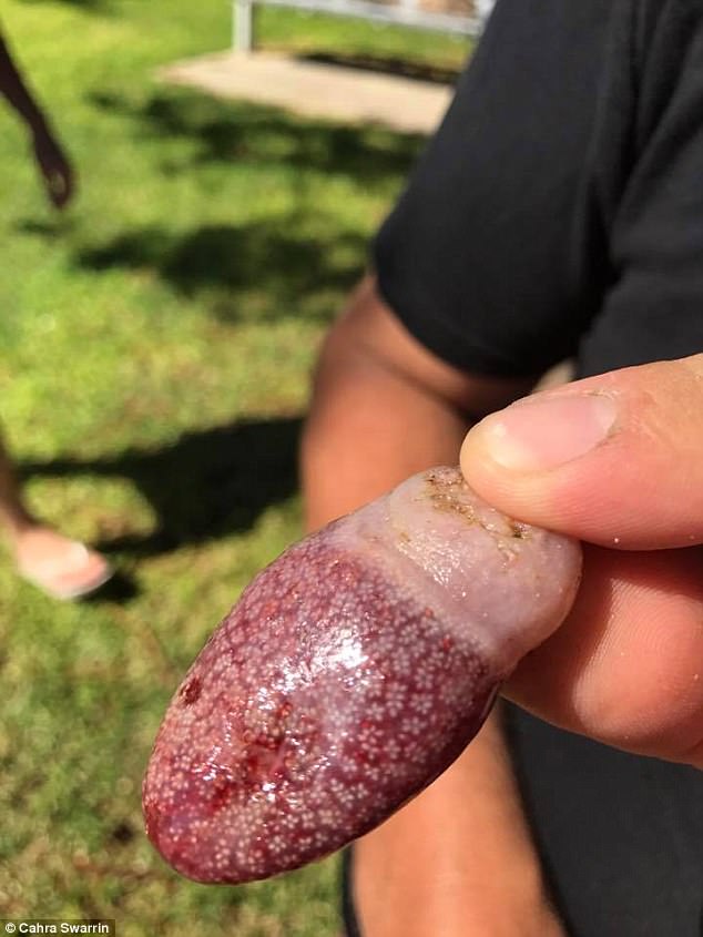 Những người đi bộ dọc bờ biển Nam, thành phố Perth, Australia đã không khỏi ngạc nhiên khi phát hiện một sinh vật kì dị trôi dạt. Sinh vật có màu hồng và tương đối ngắn này trông chẳng khác gì lưỡi người.