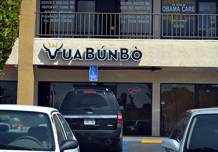Mặt tiền tiệm Vua Bún Bò trong khu chợ Á Đông trên đường Bolsa Ave., Westminster. (Thanh Phong/ Viễn Đông)