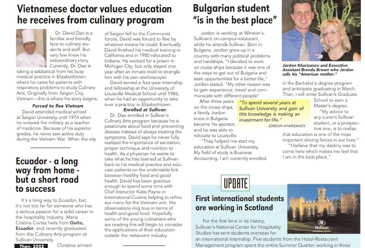 Dr. Dao enrolled in Sullivan’sCulinary Arts program because he ispassionate about food and preventingdisease instead of always treating thesymptoms. David says he never fullyrealized the importance of sanitation,proper technique and nutrition tohealth. As a physician he wants totake what he has learned at Sullivanback to his medical practice and edu-cate patients on the undeniable linkbetween healthy food and goodhealth. David has been graciousenough to spend some time withChef Instructor Katie Payne inInternational Cuisine helping to refineour menu for the Vietnam unit. Hisobservations ring true in terms of health and good food. Hopefullysome of the young culinarians whoare reading this will begin to consider the applications of their educationoutside the restaurant industry.