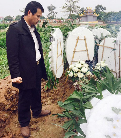 Anh Lê Anh Hào bên phần mộ con gái ở Việt Nam.