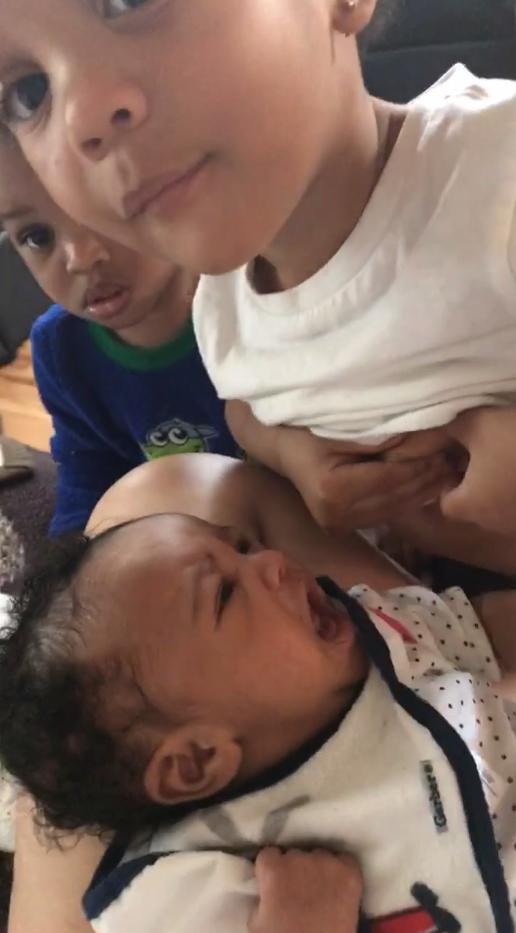 Từ đoạn video có thể thấy trong khi em gái mới được 7 tuần tuổi đang liên tục quấy khóc, cậu anh trai 2 tuổi đã nhanh ý vạch áo cho em bú, nhằm xoa dịu sự khó chịu cũng như dỗ dành em nín khóc.