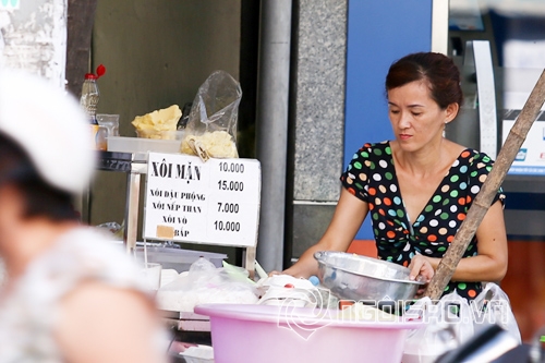 Mẹ của Angela Phương Trinh thuở còn tảo tần với hàng xôi của mình. Trông bà khá quê mùa, già cỗi