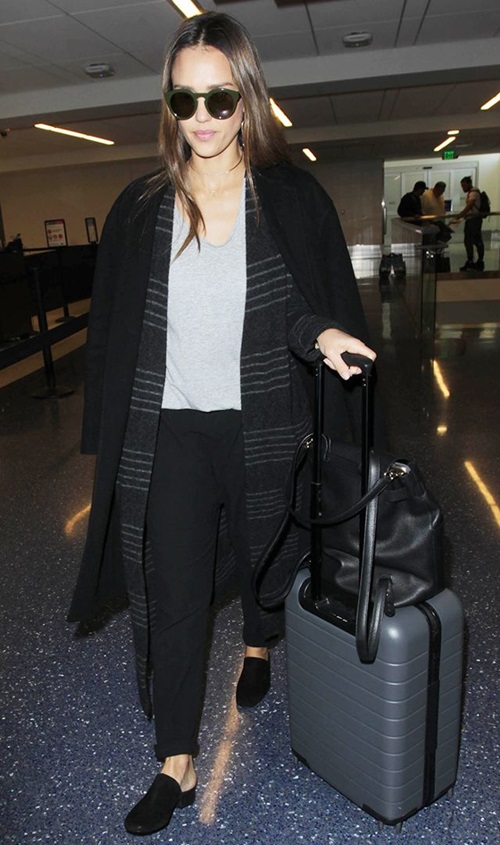 Bên cạnh yếu tố thời trang, những quý cô nổi tiếng như Jessica Alba hay Ashley Graham cũng rất chú trọng đến sự thoải mái khi mang giày dép, bởi công việc yêu cầu họ thường xuyên di chuyển từ nơi này sang nơi khác. Đó là lý do khi xuất hiện ở sân bay, họ thường mang những đôi giày thoải mái như mules (hở gót) hay dép lê êm ái. Đây là những kiểu giày đang rất thịnh hành, đồng thời mang lại sự dễ chịu tối đa cho chủ nhân.